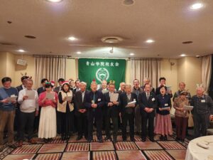 当日は来賓として、青山学院より薦田博常務理事、関根茂校友会会長にご臨席を賜り、母校の近況や取り組みをご紹介頂きました。お二人の母校の話しに、皆、懐かしさと嬉しさで、改めて母校、青山学院に誇りを持ちました。