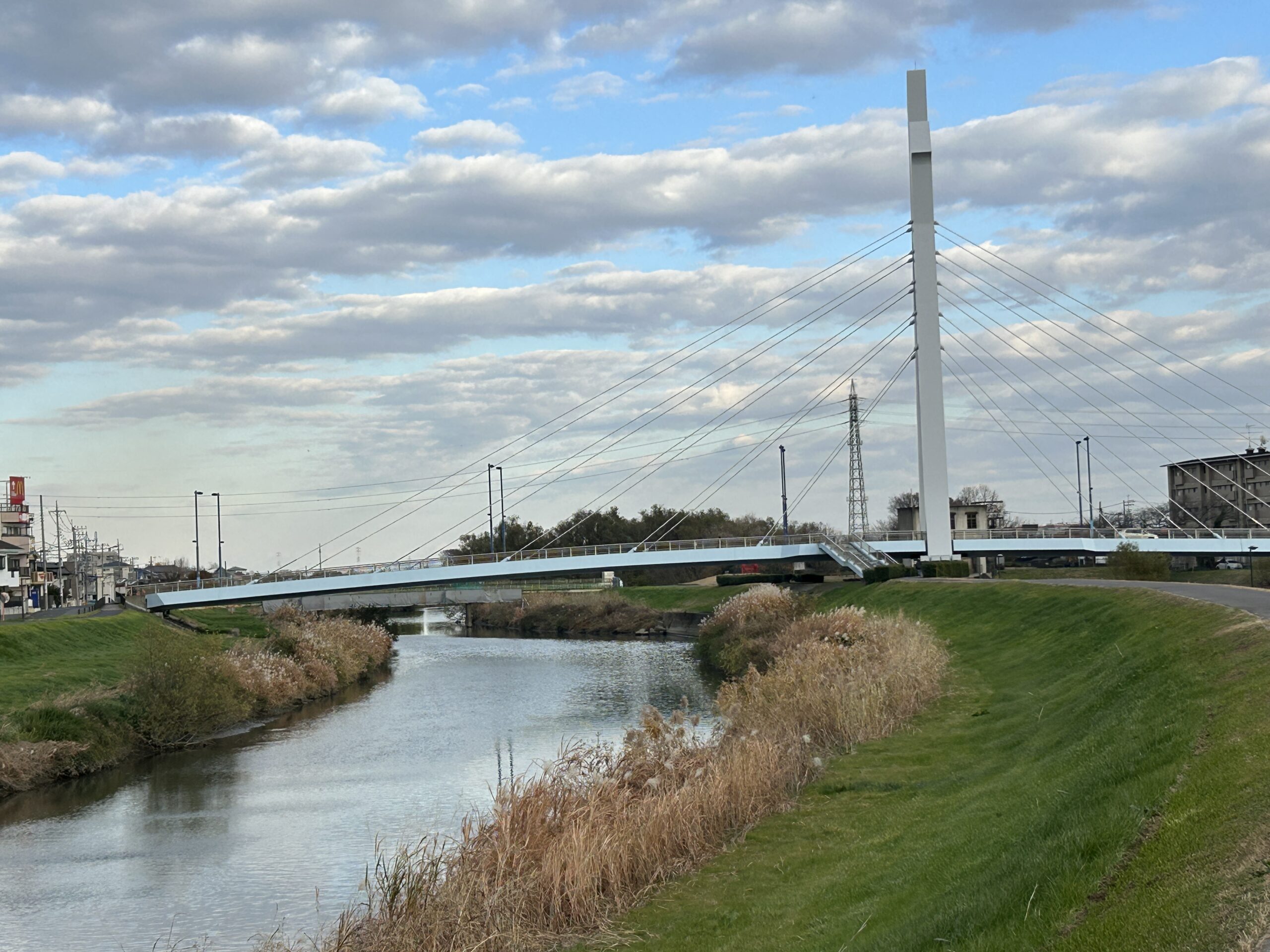 元荒川緑道の途中に真っ白な「しろこばと橋」が見えました