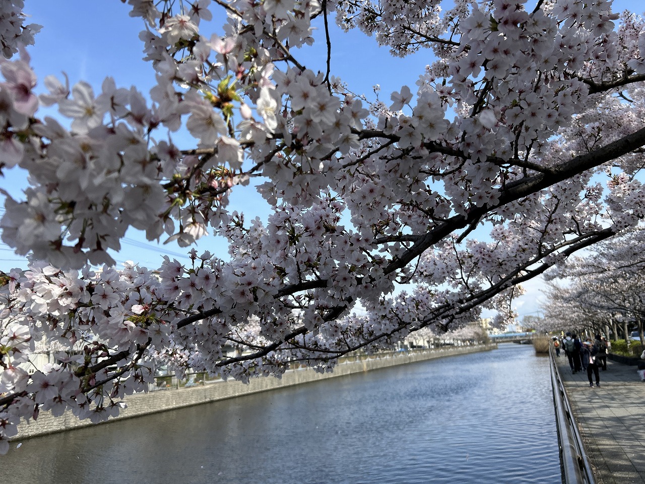川の両岸の遊歩道には20種類以上、700本を超えるさくらの木が植えられ、新川千本桜と呼ばれ