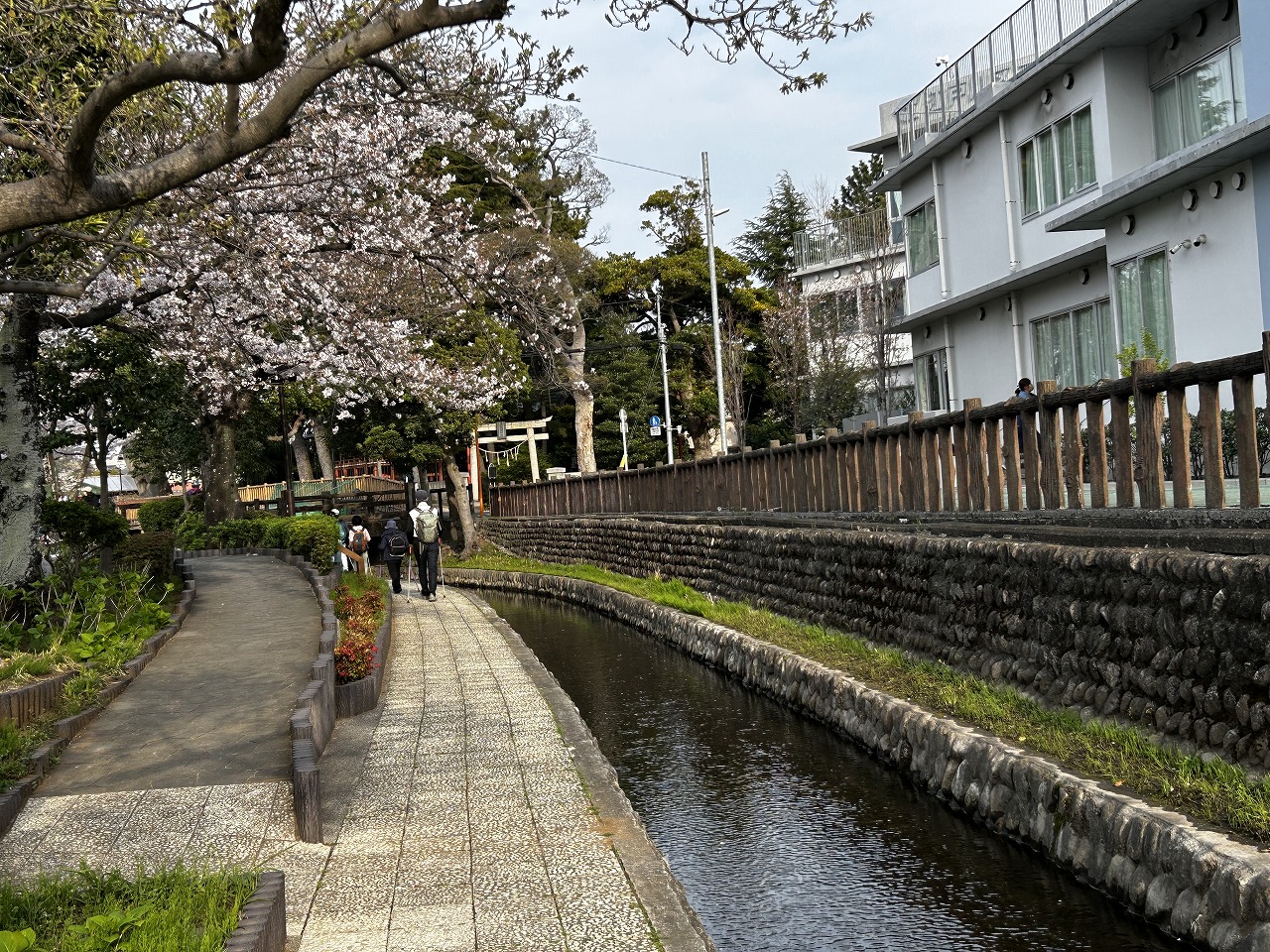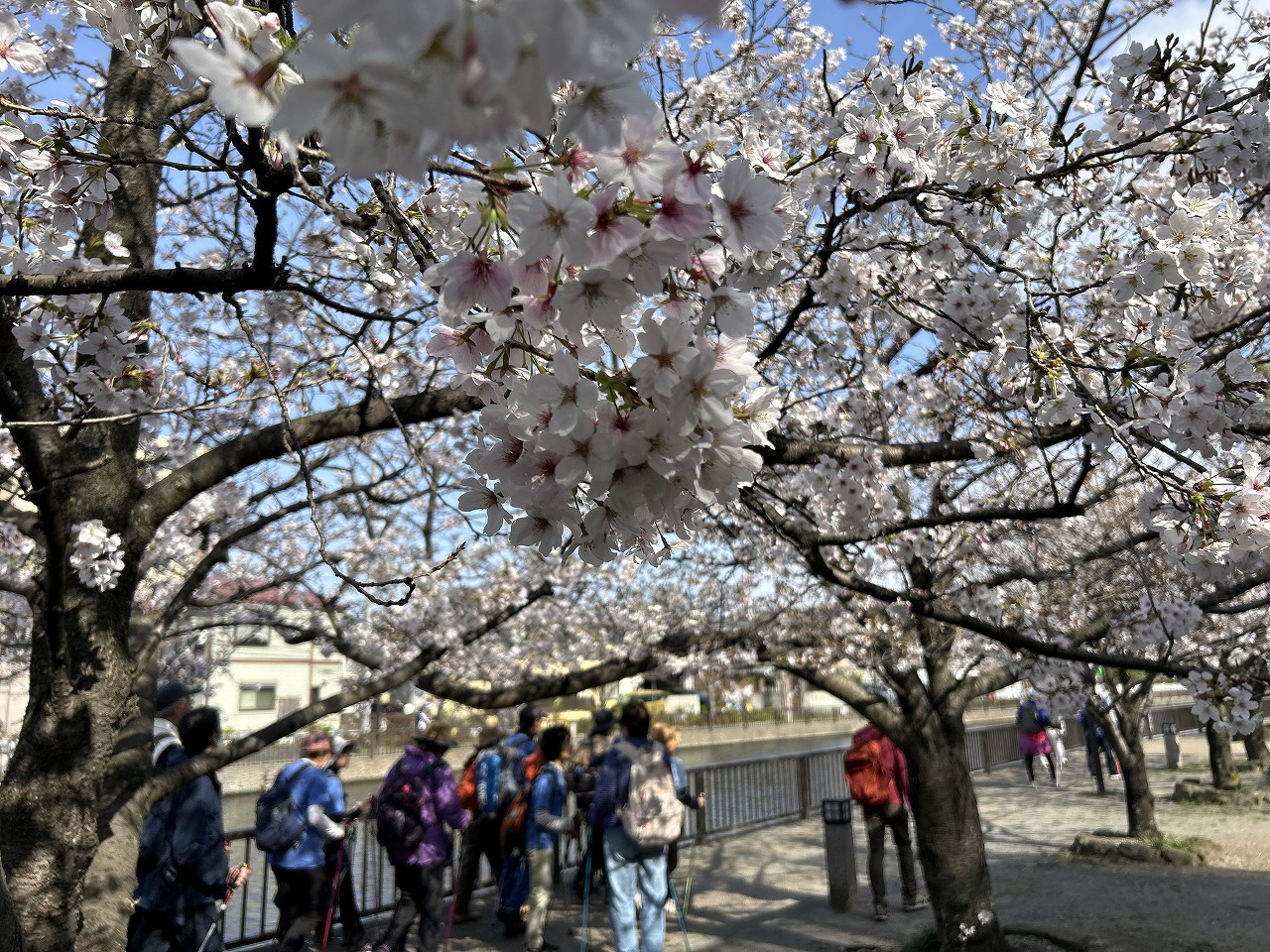 江戸情緒の雰囲気の中、新川沿いの桜並木をポールウォーキング