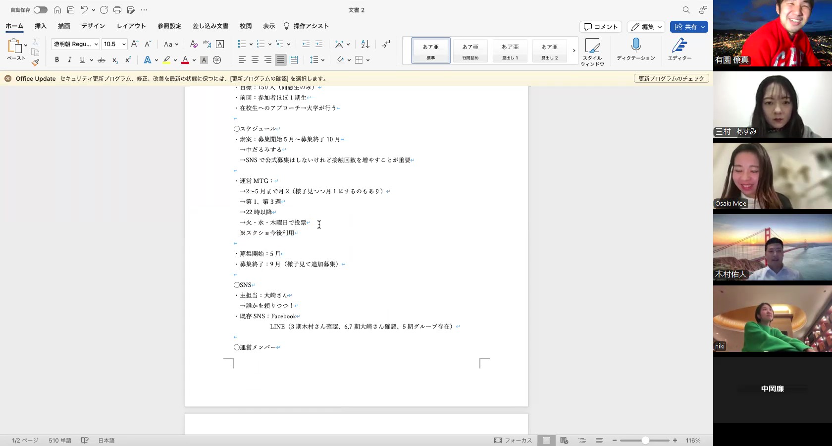 同日から翌日にかけて行う、大々的な運営メンバー募集にあたり、告知文書を完成させました。各代との連携、企画のイメージを際限なく膨らませ、盛大なパーティーへ夢も膨らむばかりです!