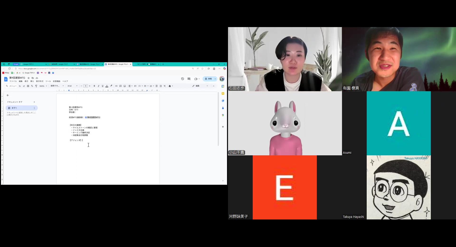 ついに地球10周年イヤーに突入!昨年末にかけて募集した新たな運営役員が加わりました。ただしかし…全員の予定を合わせるのは至難の業です。出席人数は全体の半分以下に留まりました。より具体的に動いていくなかで、日程調整も重要な課題の1つです。