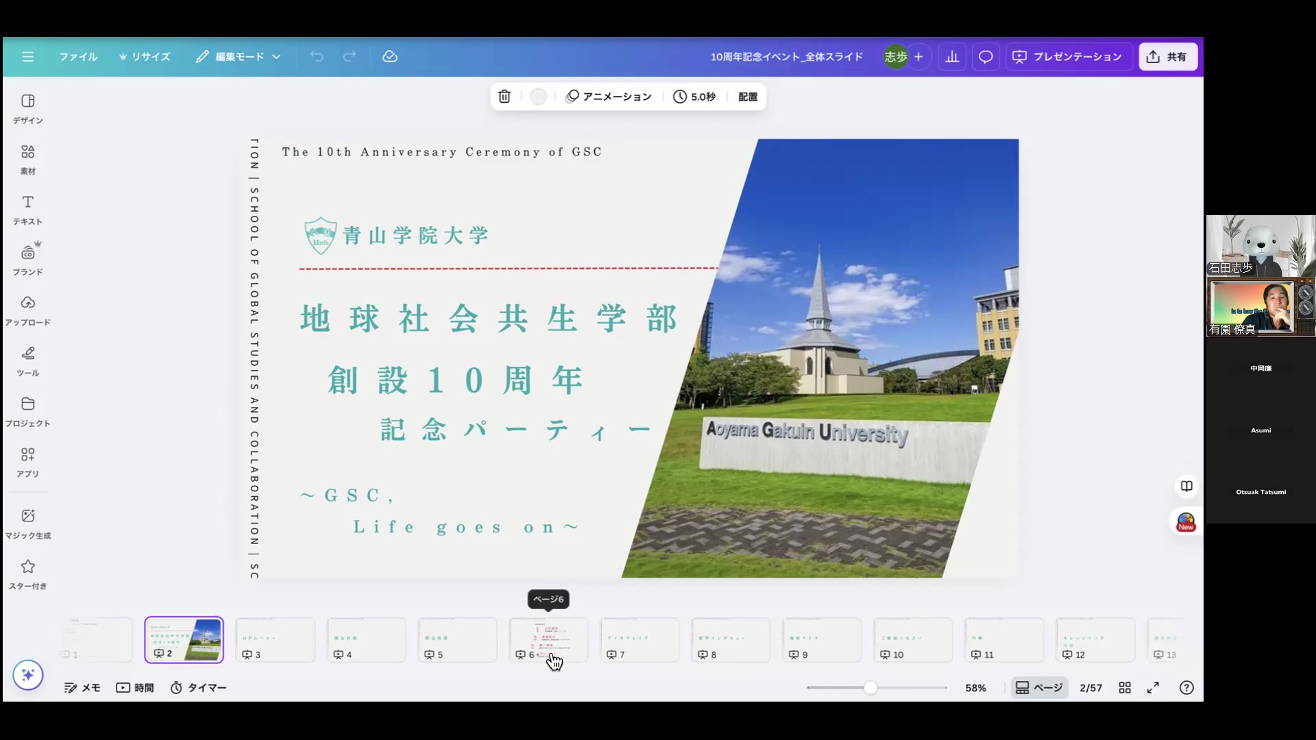 18:00 地球社会共⽣学部創⽴10周年記念祝賀会〜GSC, life goes on~