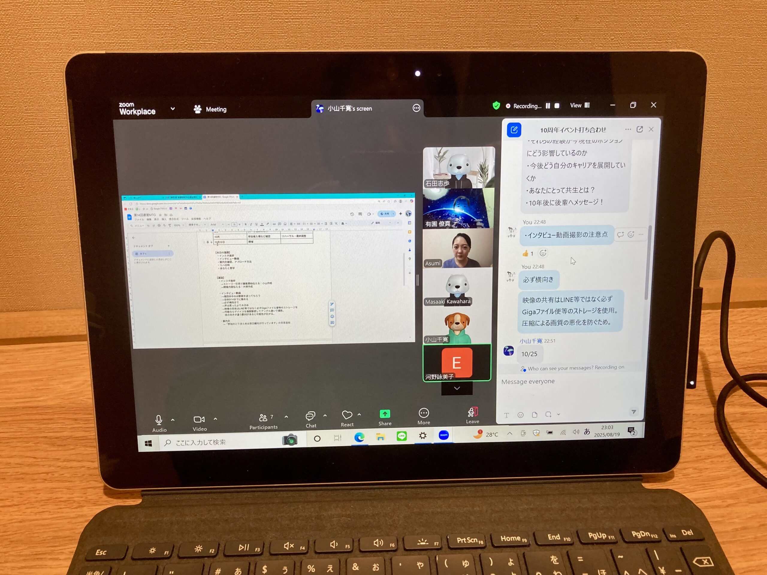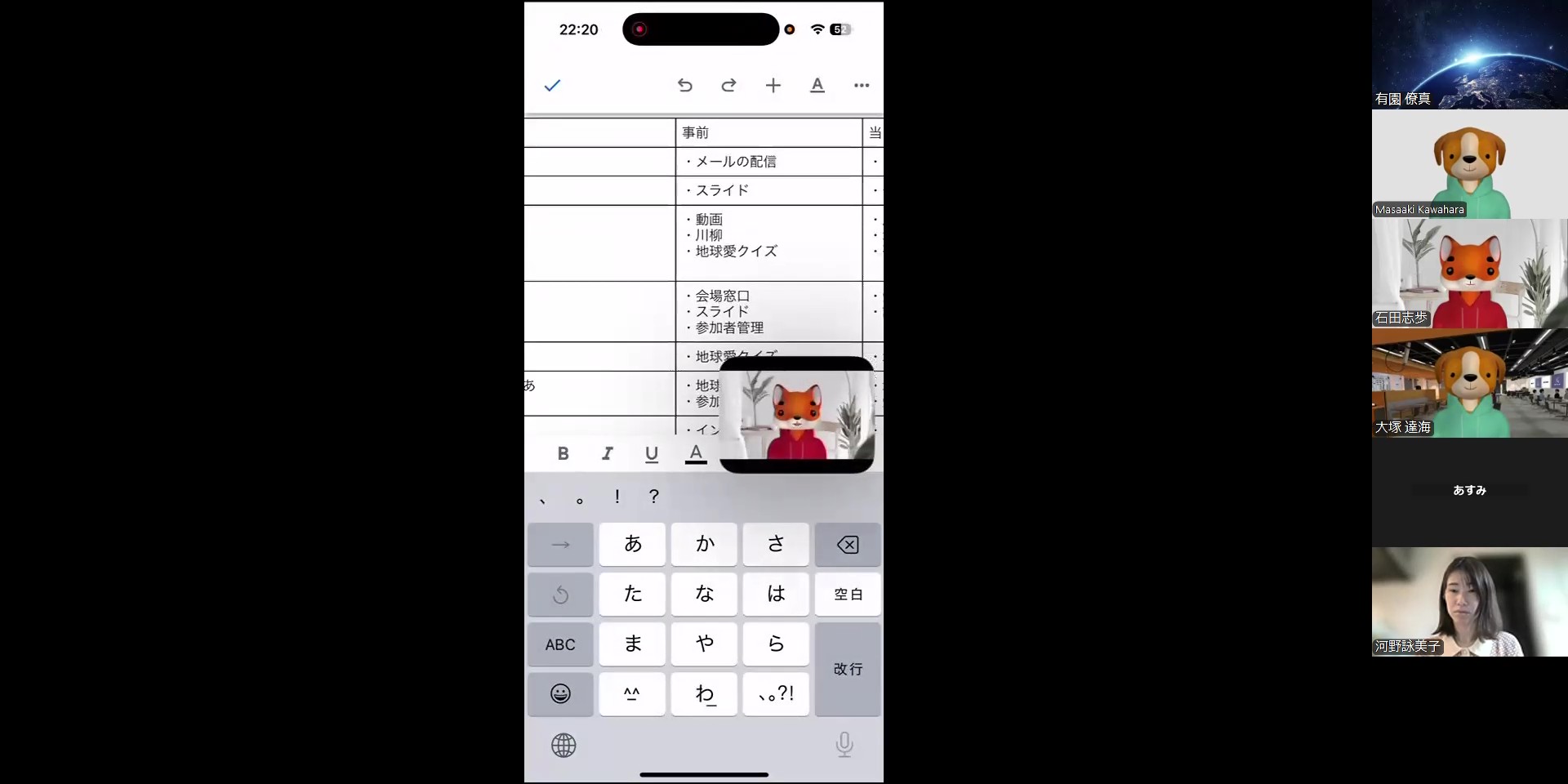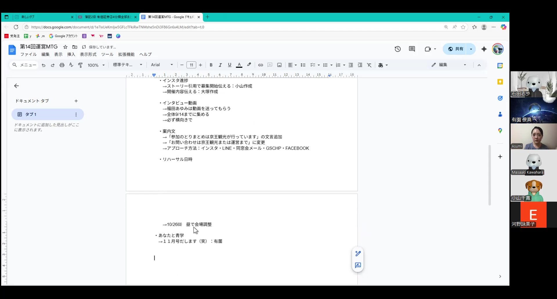 2週間に1回のペースで開催しているウェブ会議ですが、必要に迫られ、臨時で前回から1週間後に開催。参加申込フォームとインタビュー候補者に関してみっちり話し合い、会議時間は史上最長の90分に達しました。その結果、必要事項をグッとまとめられ、本当に有意義な臨時会議になりました。意外と時間がないなか、これは大きいです。
