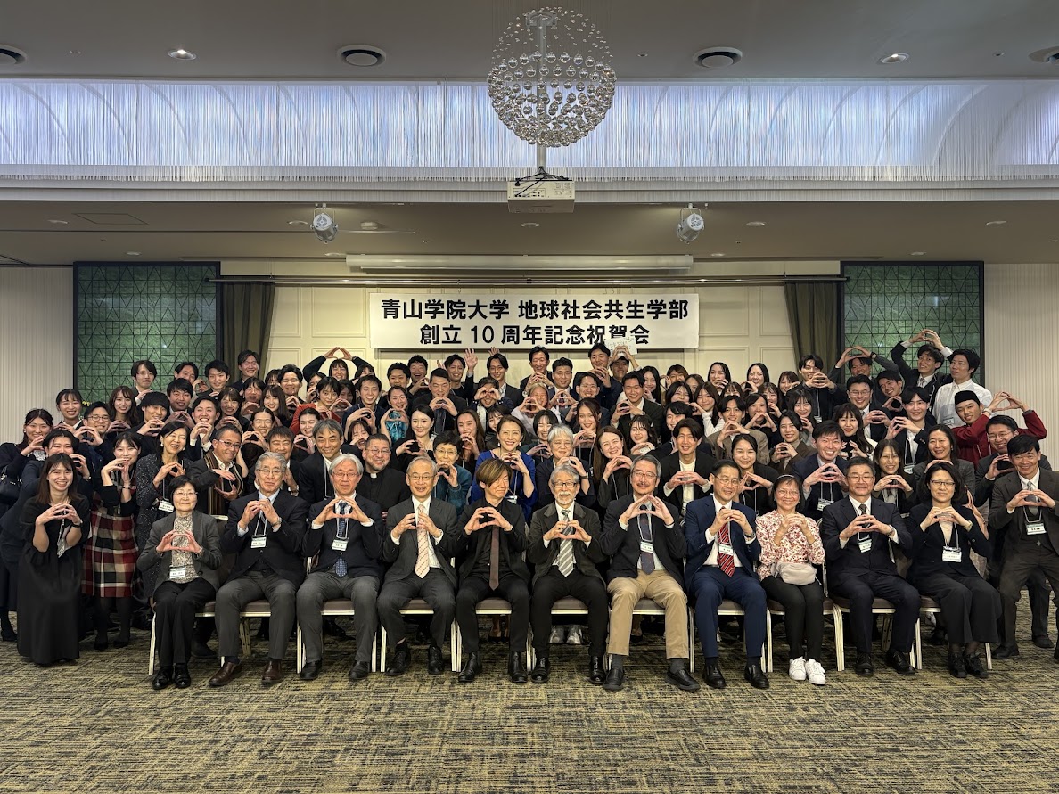 「全体を通じて、GSCらしい、学部愛のこもった素晴らしい記念行事だったと思います。創設時からの先達の先生方や職員の方々、協定校の先生方、そして、地球同窓会メンバーを始めとする卒業生の皆さんとともに設立10周年を祝うことができ、格別な思いでした。記念行事の企画から、諸準備、当日の運営まで、たいへんなご尽力をされた先生方、学務課の方々、同窓会の皆さんに深く感謝しています」