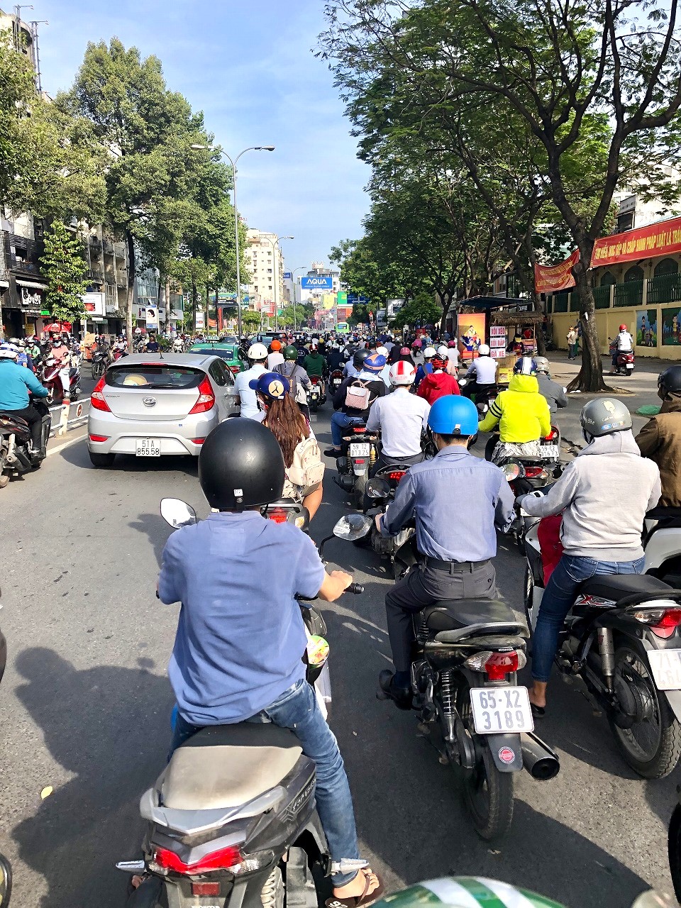 ①1台のバイクに小さい子どもを2〜3人乗せて家族で移動してたこと(チャイルドシートなどは無い)。最近は車ユーザーも増えているが、ベトナム人はどこに行くにもバイク!!