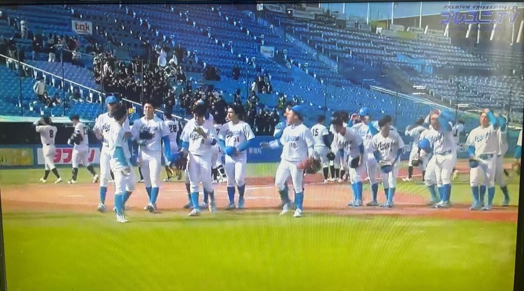 その為には、初戦、準決勝を勝ち進まねば!決勝で明治を破って日本一を飾り、プロに進む中西投手(中日1位)小田康一郎野手(DeNA1位)含む4年生の学生野球ラストを応援しましょう