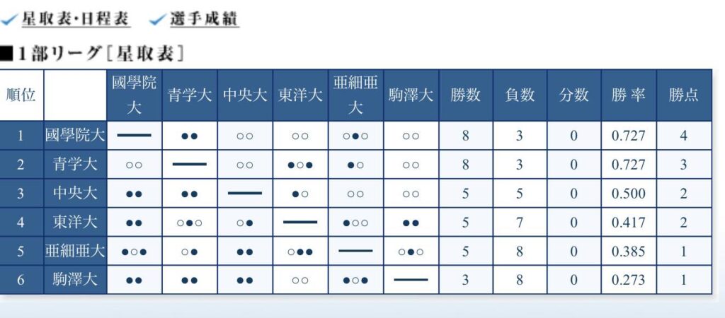 6連覇には今日明日連勝し、勝点4を上げ9勝3敗とし、國學院に1勝の差で逆転するしかない!