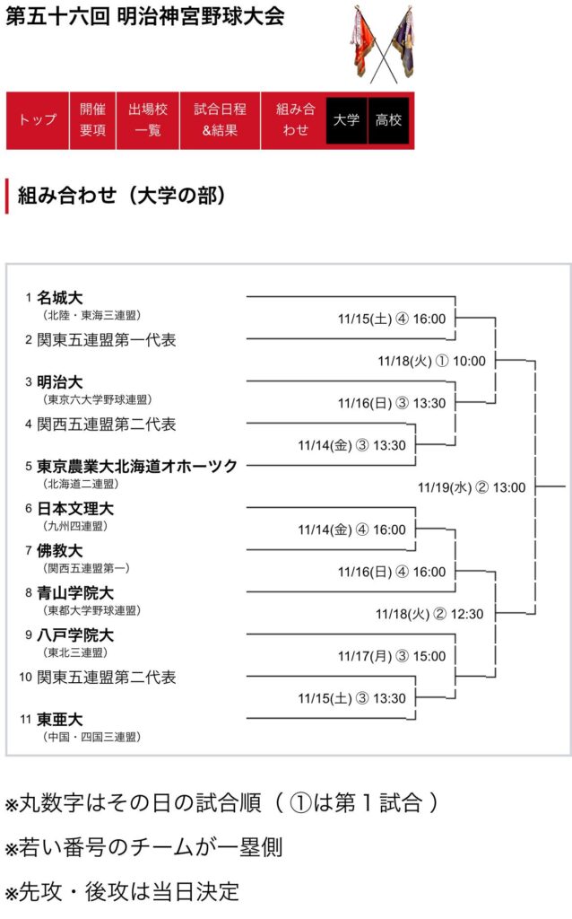 【第56回明治神宮野球大会日程決定】(2025.11.4FB投稿より転載)