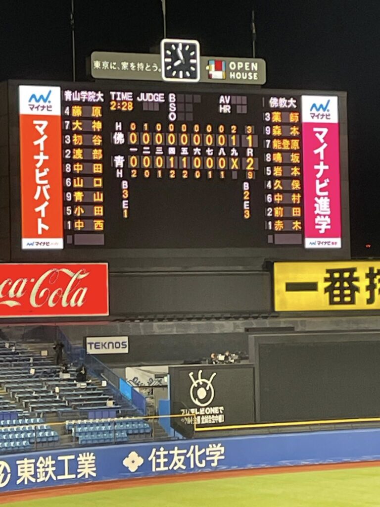 昨年に続く2連覇を狙う我が青山学院大学野球部 シード校なので、初戦は二回戦から登場。 一回戦をコールドで勝ち上がった佛教大学との二回戦。