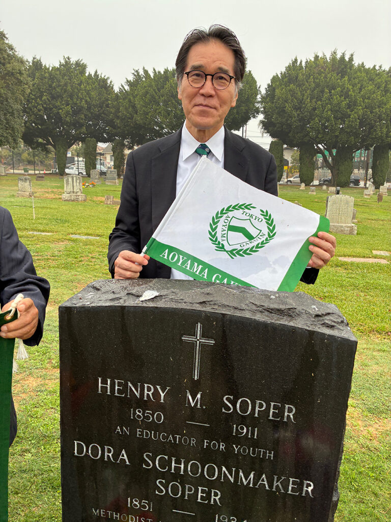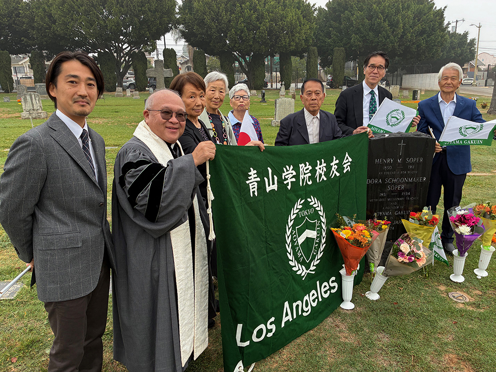 11月2日土曜日、母校創設150周年記念事業の一環として学院宗教部長および青山学院職員6名が東京からロサンゼルスにいらっしゃいました。毎年恒例の御三方の創設者の先生方のお墓参りのあと、リトル東京の都ホテル内にある多聞レストランにて親睦会ランチを開催。