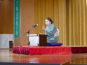 2部は30周年記念イベント講談師 田辺一邑氏による講談、浜松の偉人、世界最大の楽器メーカー「ヤマハ」創始者である「山葉寅楠オルガンを直す」が始まると、会場は田辺氏の声を聞き洩らさないように集中した雰囲気に。ヤマハのOB・OGも知らない話が聞けた。