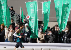 大学のスポーツ支援課経由でお集まりいただいた学生ボランティアさん延べ19名にも参戦いただき、のぼり旗を20本掲げて、2日往路は第1区の小河原選手、3日復路は第10区の折田選手を全力で応援!その勇姿を眼に刻みました。